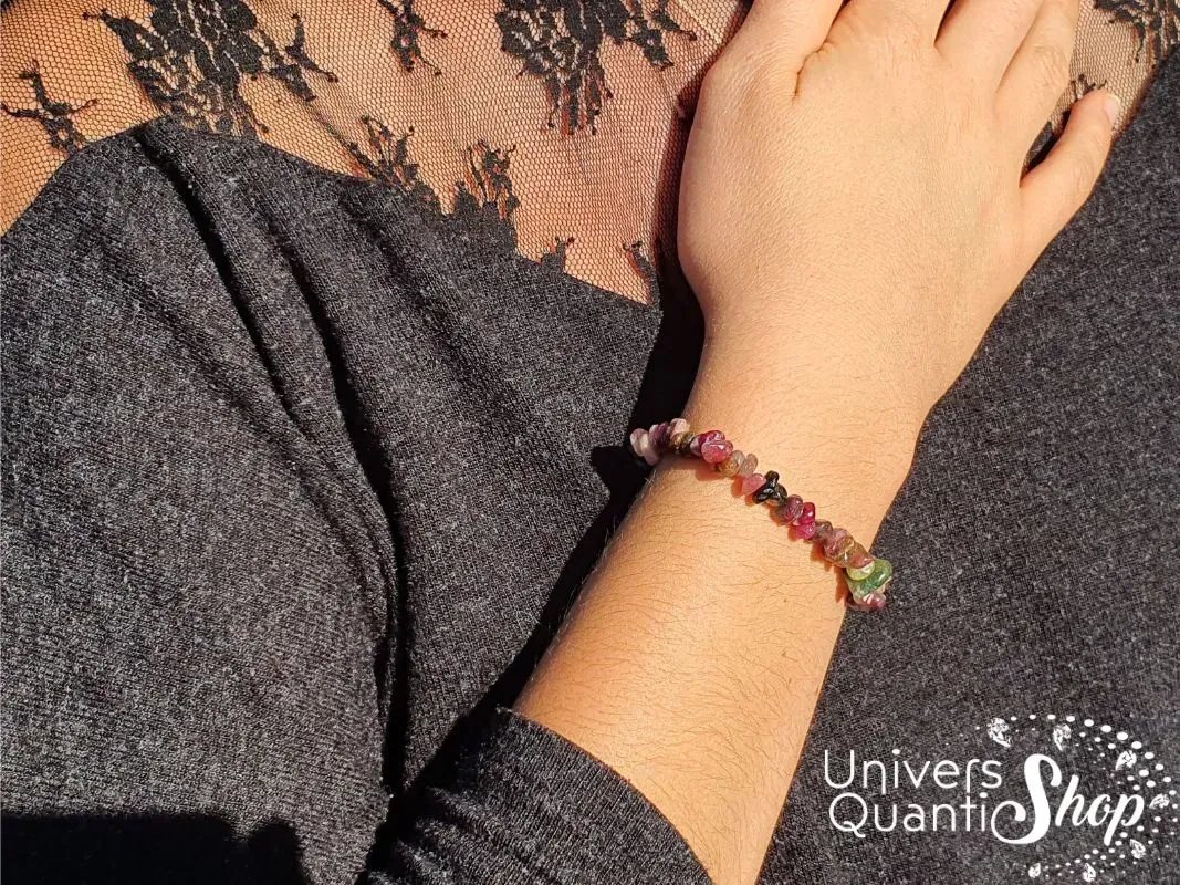 Bracelet tourmaline multicolore du Brésil - Qualité A - Baroque, fabriqué en France dans nos ateliers, pierres purifiées & énergétisées avant livraison, qualité vérifiée par nos soins. Chaque tourmaline multicolore bracelet est unique, la forme et la couleur peuvent donc varier légèrement d'un bracelet à l'autre.